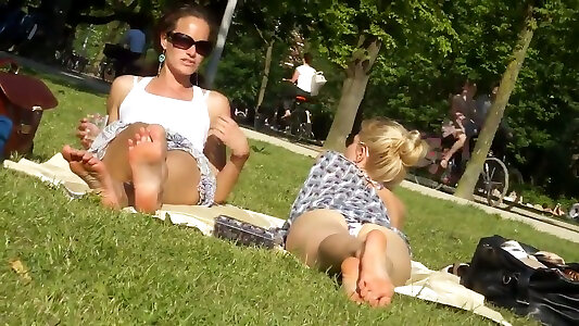 My friend was able to spy on all natural blond bombshell sunbathing in the park
