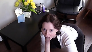 Mature secreatary Alyssa Lynn on her knees sucking a gigantic weenie