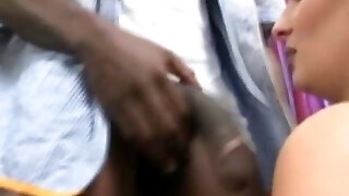 Big Black Cock BBC Lover Hefty Bra-stuffers Gigantic Ass Blonde MILF gets her wet pussy Half Creampied with Thick Cumshot of Black Guy