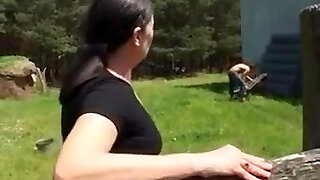 Pretty granny enjoys getting fucked in the ass outdoors!