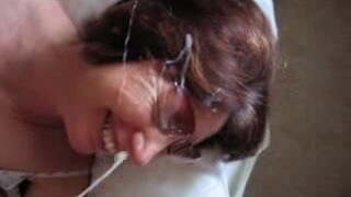 mom-in-law is covered in jizz after numerous endings on her face and mouth