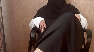 Syrian milf in hijab gives jerk off instructions, cum with her