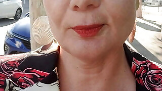 nippleringlover - horny cougar outdoors without bra, flashing sexy butt, pierced pussy and huge pierced nipples