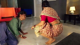 Steamy Step Mother Seduces Step Son in the office, shows him milky nipples and Makes big cock Hand-job
