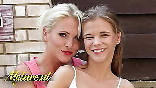 (tabù lesbiche fuck-fest) gilf polverizza giovane towheaded ninfa con cinturino dildo