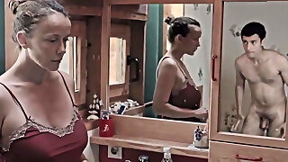 Step Mother caught Step Son-in-law with boner while cleaning and helped him cum quickly