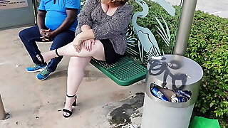 I lifted my mini mini-skirt and opened my gams for a stranger at the bus stop to rub my pussy thru my panty