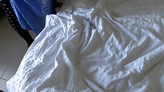 I'm your step mommy! Sate don't cum in me! step son caught blindfolded step mother alone