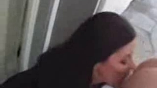 Wicked lesbian pleases stunning girl by providing her Rimjob