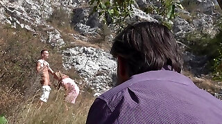 Outdoor MMF threesome with a blonde stunner - Anna Versailles